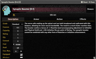Bioware Items covers implants that are not Cyberware. They appear on the Actor's Gear Tab.