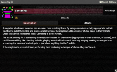 Metamagic is learned by Awakened characters when they undergo Initiation. When added to an Actor, they appear on the Actor's Bio Tab, under the Qualities.