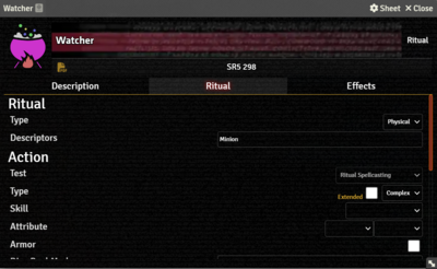 The Ritual Tab functions in a similar manner to the Action Tab, but specifically configured for the Ritual Workflow.[git 1]