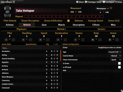 - Matrix Tab — Functions much like the Character Actor, just without an option to set hotsim because vehicles and drones don't get that benefit.