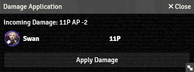 - Clicking the Modified[git 2] Damage Value will prompt to apply that damage to the indicated Actor. (Poor Swan.)