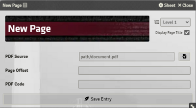 {{Imagebox|fvtt-journal-addpage-pdf.webp|Create New Page|s=0.16.1|f=11.315}}{{Imagebox|fvtt-journal-configure-pdf.png|Configure PDF Page|s=0.16.1|f=11.315}}[https://foundryvtt.com/packages/pdf-pager PDF Pager] allows the source links in {{Category|Item}} sheets to pull up specific pages within the PDFs. | {{Imagebox|fvtt-journal-addpage-pdf.webp|Create New Page|s=0.16.1|f=11.315}}{{Imagebox|fvtt-journal-configure-pdf.png|Configure PDF Page|s=0.16.1|f=11.315}}[https://foundryvtt.com/packages/pdf-pager PDF Pager] allows the source links in {{Category|Item}} sheets to pull up specific pages within the PDFs. |
