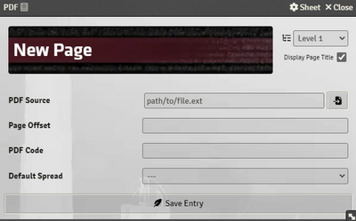 {{Imagebox|fvtt-journal-addpage-pdf.webp|Create New Page|s=0.16.1|f=11.315}}{{Imagebox|fvtt-journal-configure-pdf.webp|Configure PDF Page|s=0.21.2|f=12.331}}[https://foundryvtt.com/packages/pdf-pager PDF Pager] allows the source links in {{Category|Item}} sheets to pull up specific pages within the PDFs. | {{Imagebox|fvtt-journal-addpage-pdf.webp|Create New Page|s=0.16.1|f=11.315}}{{Imagebox|fvtt-journal-configure-pdf.webp|Configure PDF Page|s=0.21.2|f=12.331}}[https://foundryvtt.com/packages/pdf-pager PDF Pager] allows the source links in {{Category|Item}} sheets to pull up specific pages within the PDFs. | ||