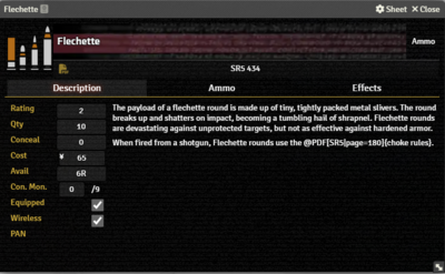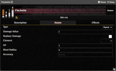 Revision as of 21:15, 20 November 2023 by Mr. Johnson (talk | contribs) (Text replacement - "sample-" to "sr5-")(diff) ← Older revision | Latest revision (diff) | Newer revision → (diff) Needs Improvement This page is incomplete. This article was last edited Monday, November 20, 2023 by Mr. Johnson. Weapon Item (SR5 v0.16.1, FVTT v11.315) Weapon Item (SR5 v0.16.1, FVTT v11.315) Categories: ItemNeeds ImprovementHidden categories: SR5 v0.16.1FVTT v11.315